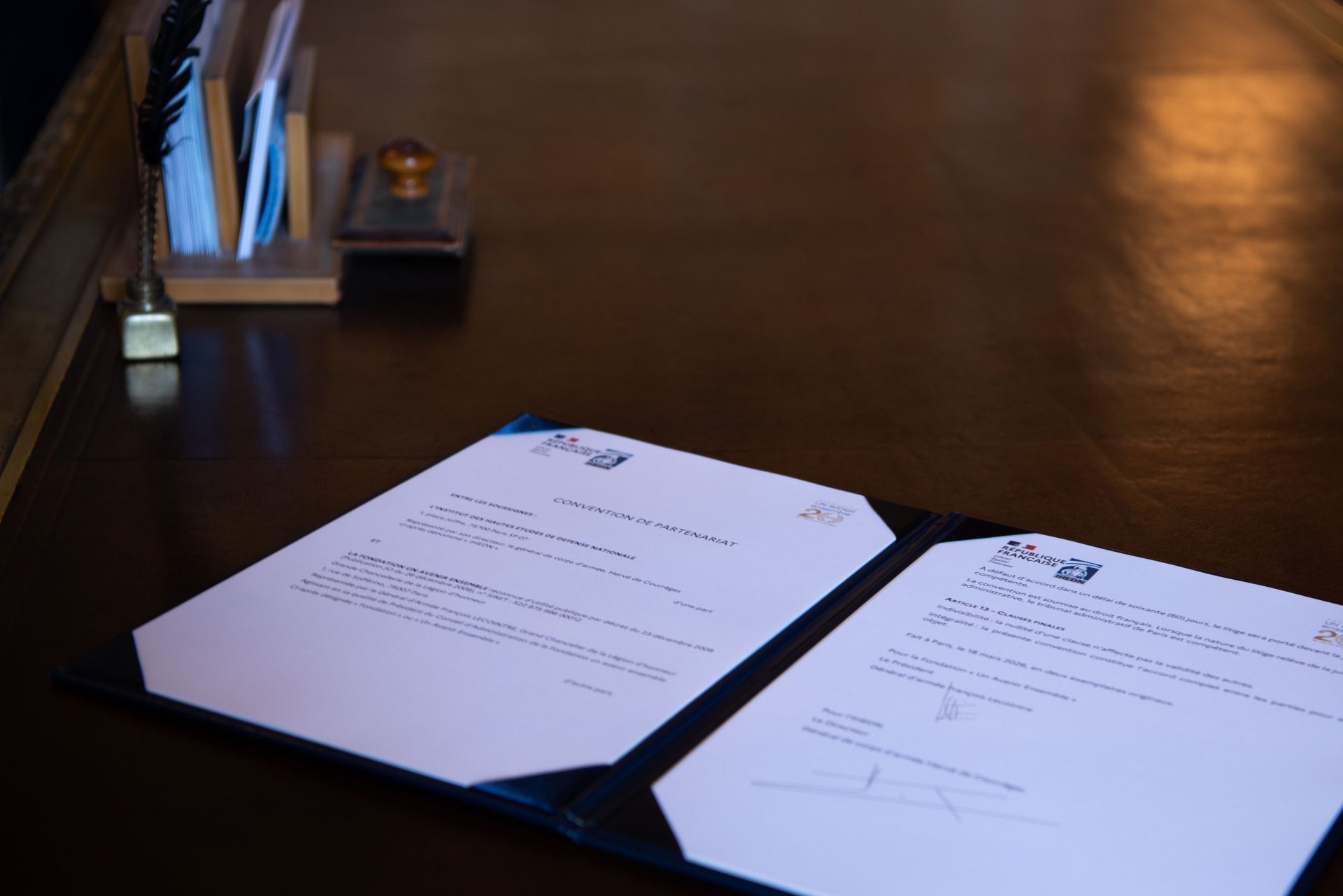 On 18 March, Lieutenant General Hervé de Courrèges, Director of the Institut des hautes études de défense nationale, and Army General (2S) François Lecointre, Chairman of the Un Avenir Ensemble foundation, formalised the signing of a partnership agreement aimed at bringing together the actions of the two organisations for the benefit of the younger generation.